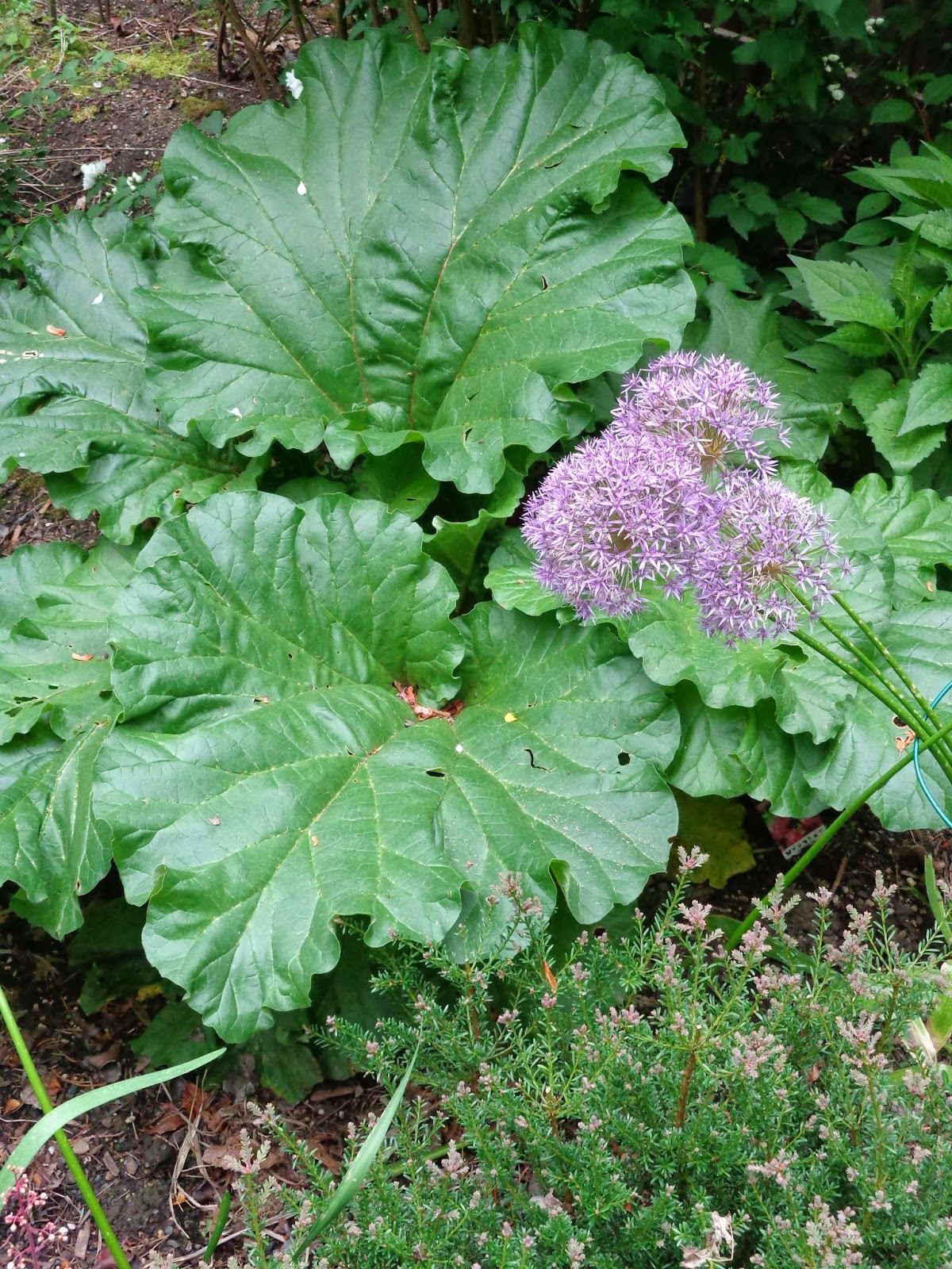 Rhubarb, Allium and Podocarpus lawrencei ‘Red Tip