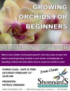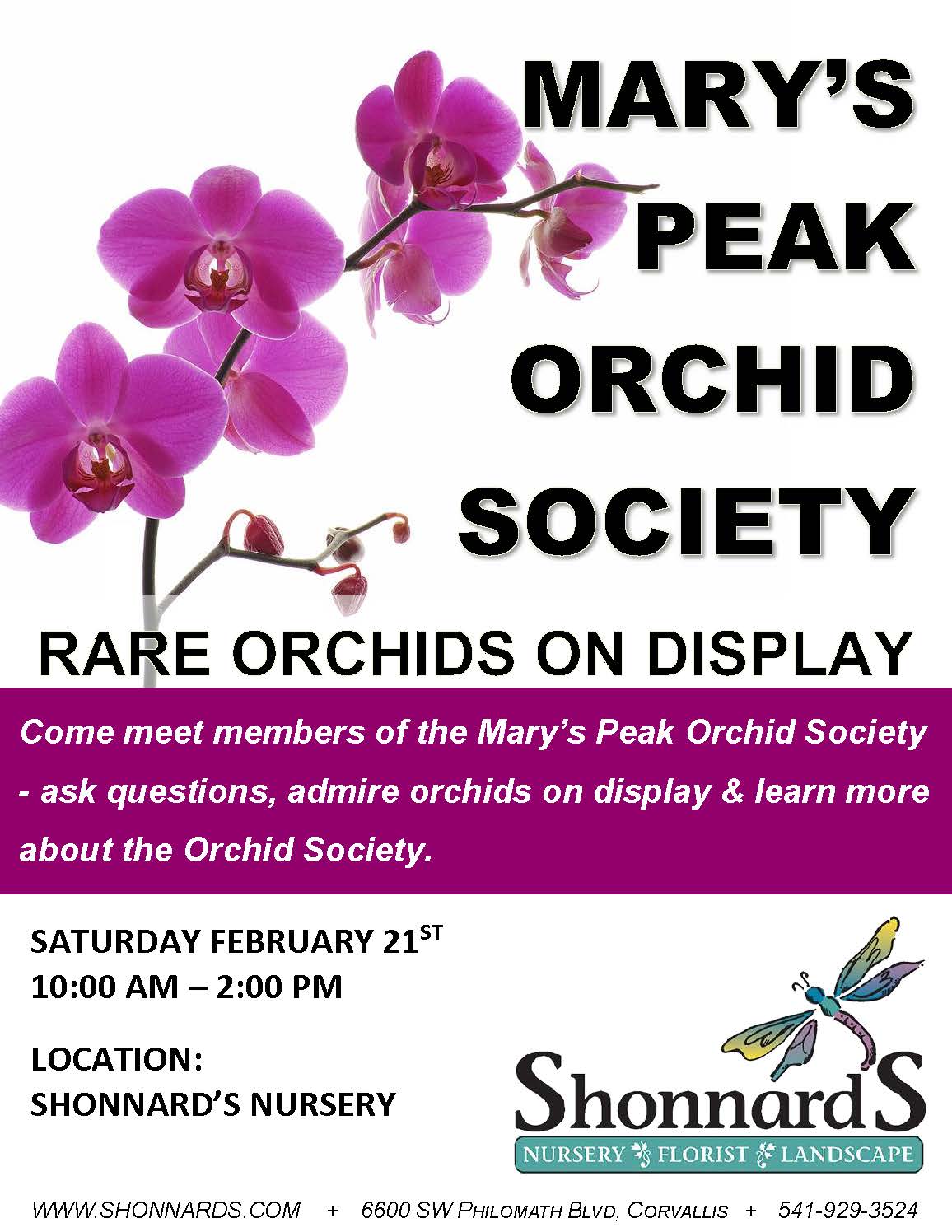 For the Love of Orchids Day with Mary’s Peak Orchid Society at Shonnard’s Nursery
