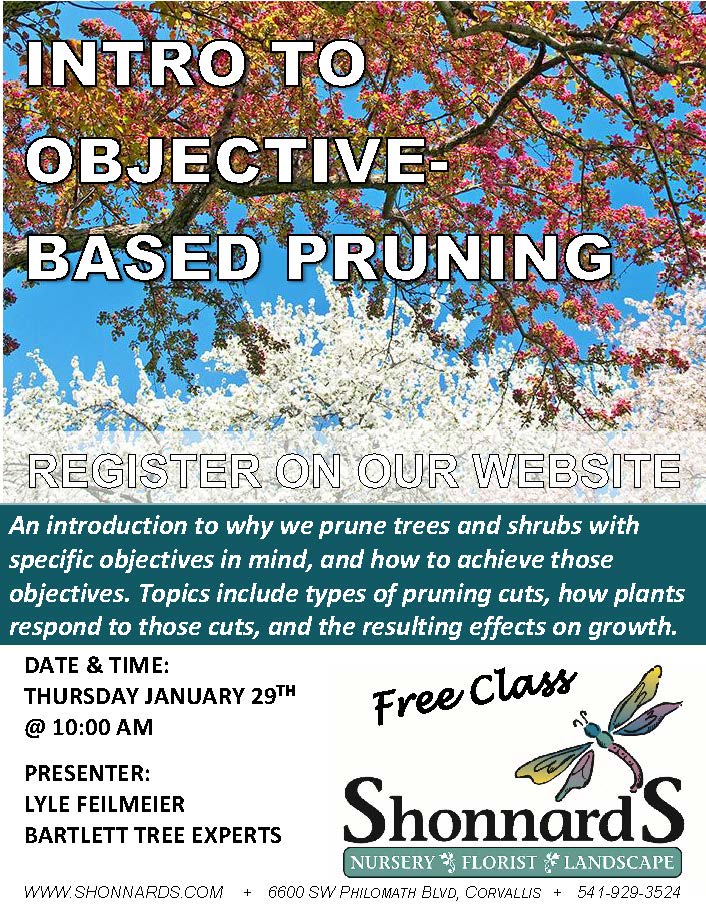 Presented by Lyle Feilmeier with Bartlett Tree Experts, come to learn an intro to why we prune trees and shrubs with specific objectives in mind, and how to achieve those objectives. Topics include types of pruning cuts, how plants respond to those cuts, and the resulting effects on growth. Also covered will be safety, fruit production, structural integrity, size control, and more.