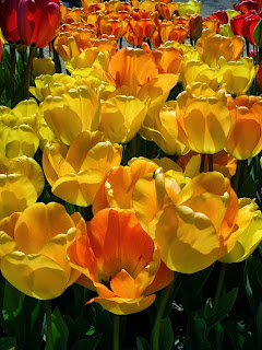 · Choose the right spot – Bulbs like sunlight, so choose a planting spot that gets at least six hours of sun a day. Remember, in spring, when the trees are leafless, you may have more light than you think. The spot must drain well, so avoid places with soggy soil where rainwater collects. Plan for five tulip bulbs per square foot. Using a bit of easy math, a planting of 100 tulips needs approximately 20 square feet. Since the area of a space is length times width, the bed could measure, for example, four by five feet or two feet by ten feet, depending on the look you want.