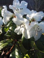 Sarah Smith, The Gardensmith – Rhododendron ‘Snow Lady’ (R. leucaspis × R. ciliatum) is one of my favorite shrubs. It looks great year round with bright olive green leaves covered in little hairs that shout out “fondle me!” It has small white flowers which in my Milwaukie garden bloom in early March. It is a small grower, about 3-4 feet tall and wide, and will bloom well in bright shade. The only drawback I see to it is if we have a hard freeze in late winter, flowers can be lost, but the foliage still looks great.