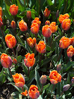 Orange Favourite – A fragrant Parrot Tulip with curled and serrated orange petals with a touch of green and yellow. This bulb was introduced in 1930, grows to 20-24 inches and blooms mid-late spring.