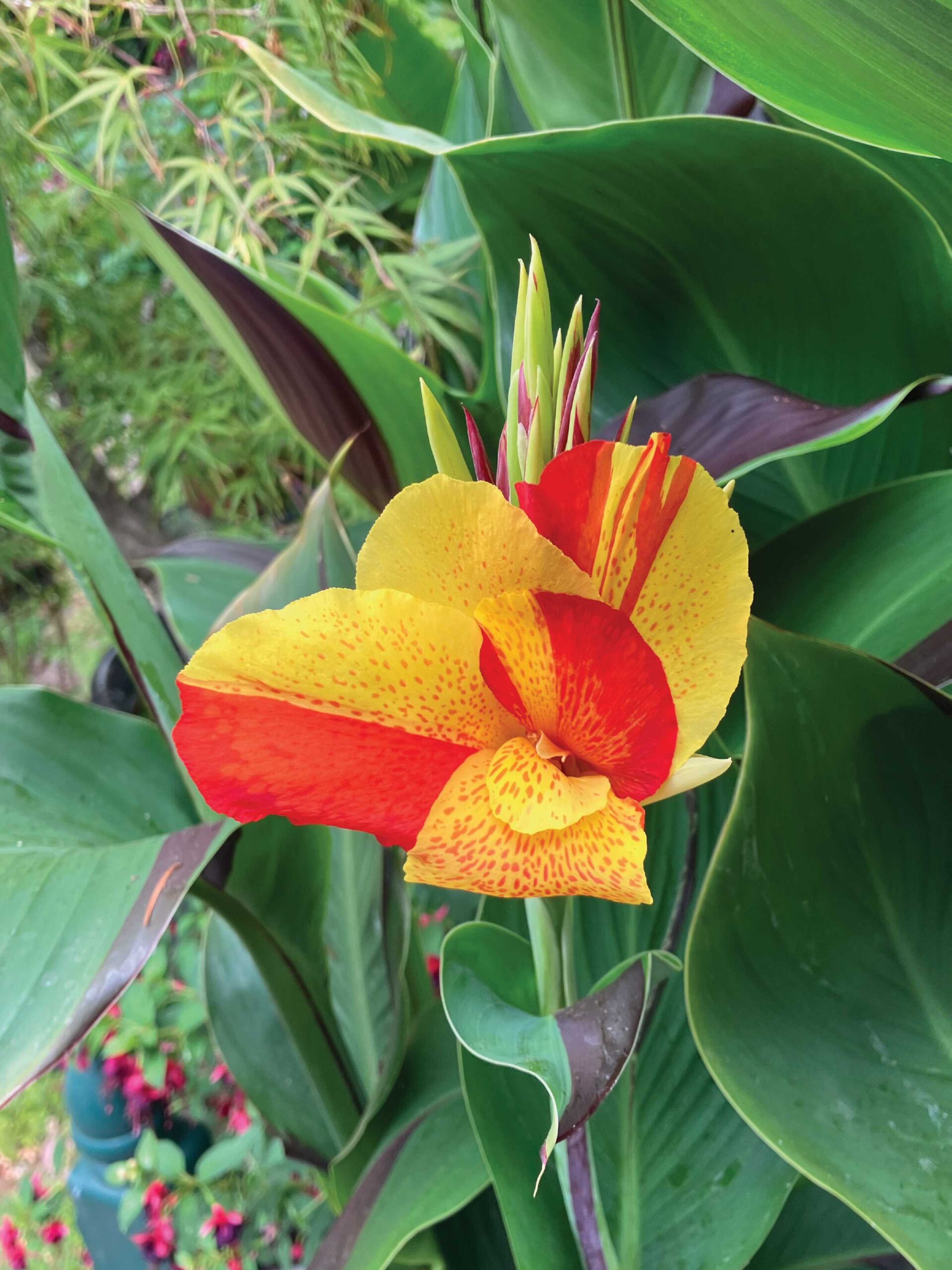 What about a plant that cannot decide on what color the leaves will be, whether they are new growth or old growth? Canna ‘Cleopatra’ is such a plant. Some leaves will be totally deep purple, others will be solid green, and many will be a combination of the two. Even the flower is multicolored and seemingly cannot decide which color will dominate. The flowers can be all red, all yellow, or a mix of the two colors. It is a great conversation plant in the garden because of all these colors. Even with limited space, try this in a large pot on a deck or patio and watch visitors gravitate to it.